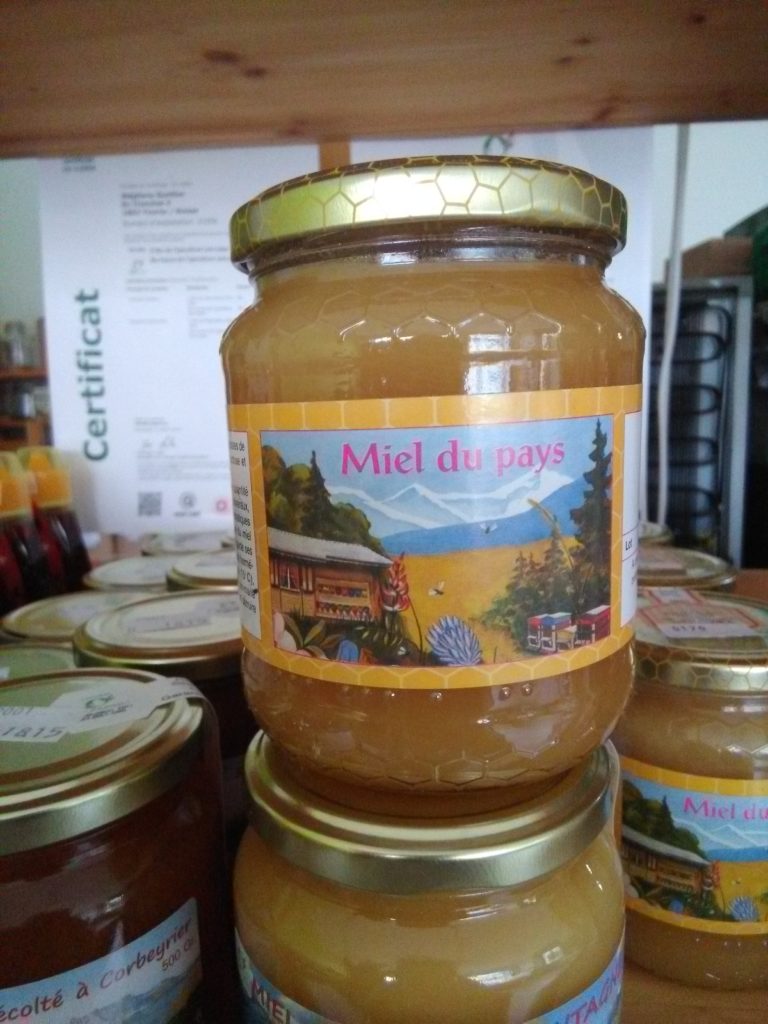On peut sans crainte parlé de miel kilomètre 0 puisque les ruches sont sur le terrain de la Ferme de La Gryonne.